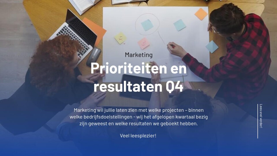 Marketing wil jullie laten zien met welke projecten – binnen welke bedrijfsdoelstellingen - wij het afgelopen kwartaal bezig zijn geweest en welke resultaten we geboekt hebben.